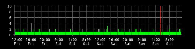The graph shows the round trip times of the pings, with solid red or yellow lines where pings have failed.
